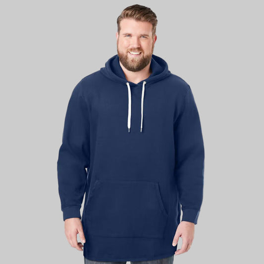 Navy Blue Fleece Long Length Pullover Hoodie PSM-5165