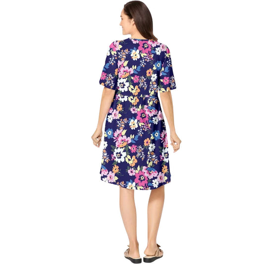 Navy Multi Garden Button-Front Short Essential Dress PSW-9605