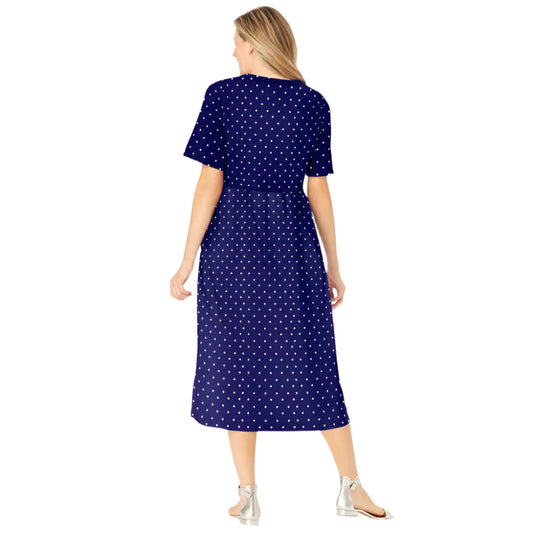 Navy Polka Dot Button Front Essential Dress PSW-8428