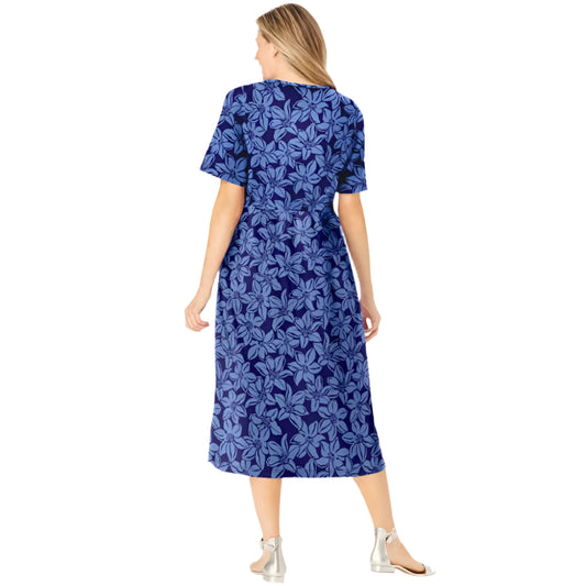 Navy Pretty Blossom Button-Front Essential Dress PSW-9787