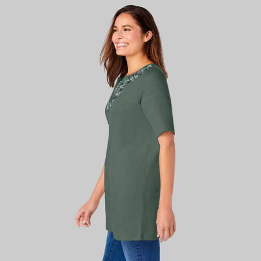 Pine Flower Embroidery Layered Look Tunic PSW-8166