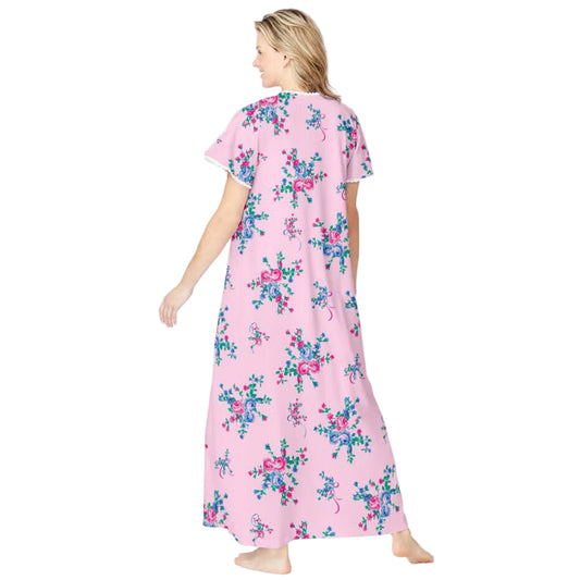 Pink Floral Long Pintuck Knit Gown PSW-10086