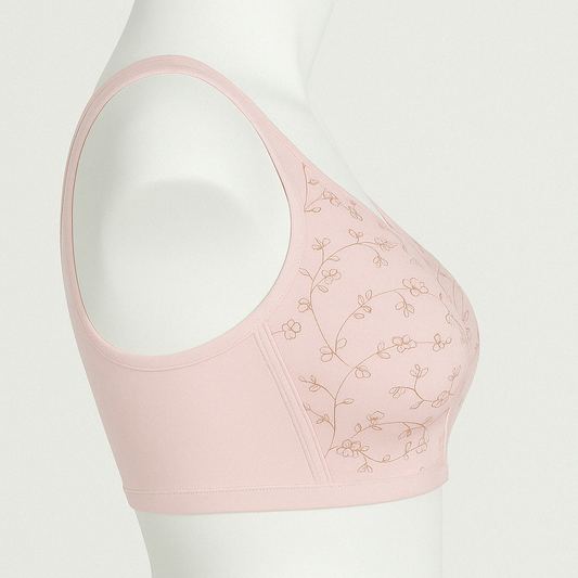 Pink Floral Front Open Plus Size Bra – Wireless Cotton Comfort PSW-9396