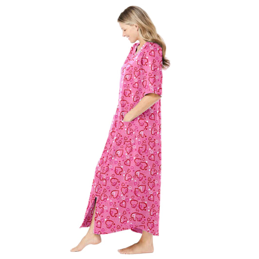 Pink Hearts Long French Terry Zip-Front Robe PSW-10025