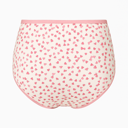 Pink Heart Print High-Waist Plus Size Cotton Brief PSW-9524