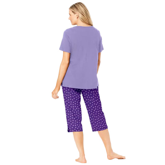 Plum Burst Dot Two Piece V-Neck Tunic & Capri Set PSW-7635