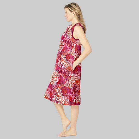 Pomegranate Floral V-Neck Sleeveless Lounger PSW-10179