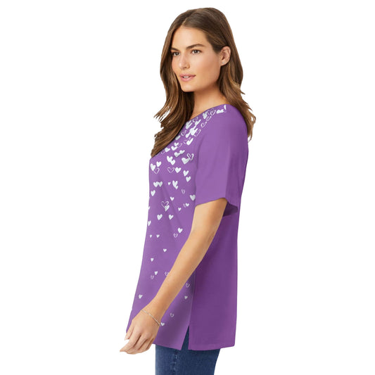 Pretty Violet Falling Hearts Floral Crewneck T-Shirt PSW-6506