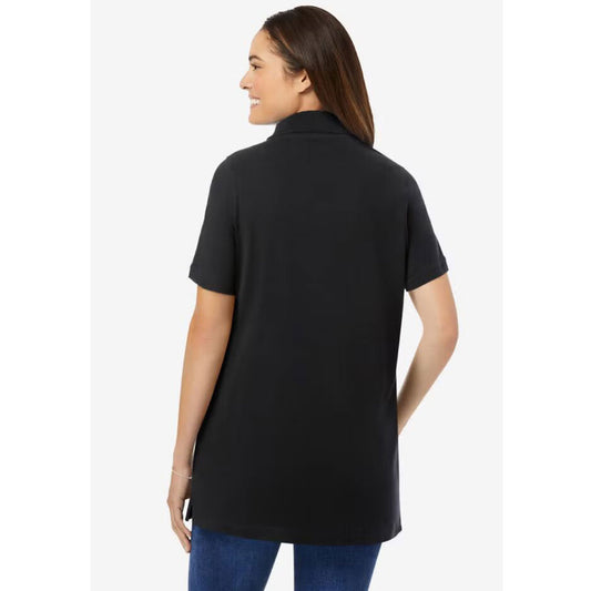 Black Perfect Short-Sleeve Shirred V-Neck Tunic PSW-8049