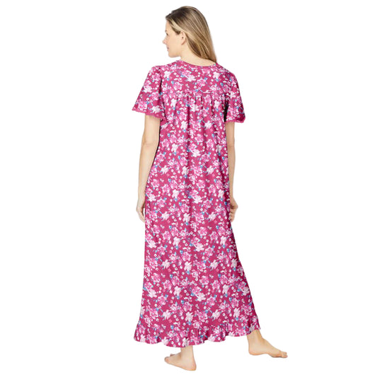 Strawberry Roses Long Floral Frill Print Cotton Gown PSW-10088