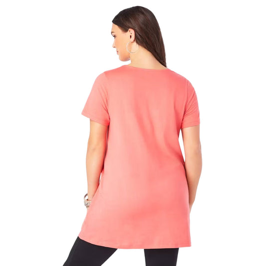 Sunset Coral Lattice-Neck Short Sleeve B Grade Tunic PSW-9312B