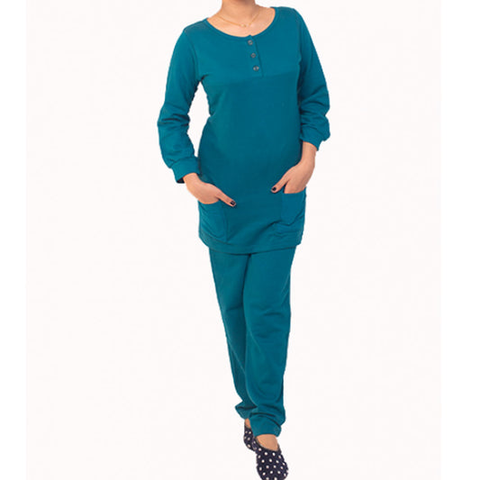 Teal Green Fleece Henley Pajama Set PSW-5077