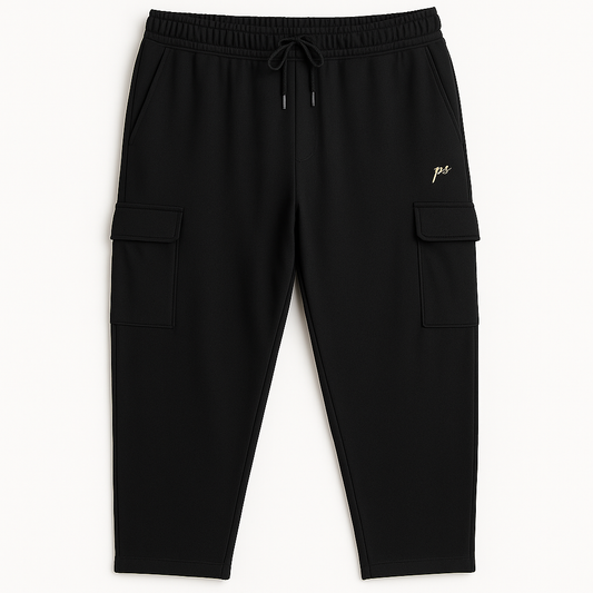 Black Terry Comfy Cargo Pants PSM-8792