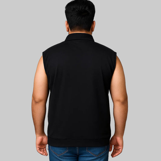 Black Terry Sleeveless Zipper Jacket PSM-8708