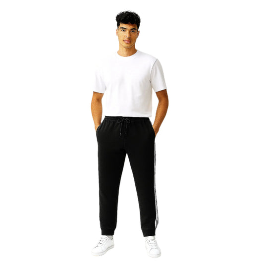 Black Terry Side Stripe Cuffed Plus Size Trousers PSM-9848
