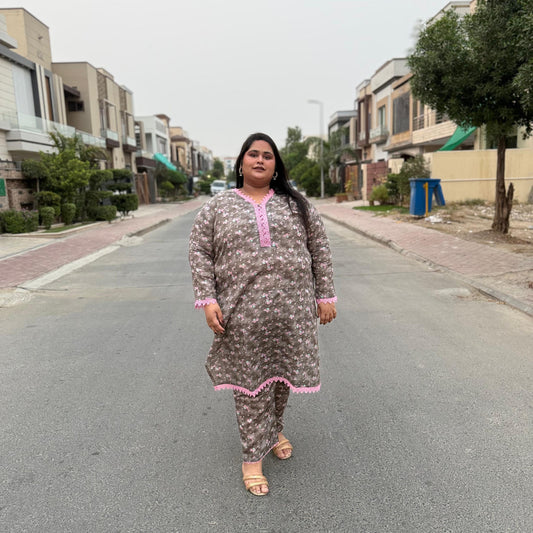 Blush Bloom – Plus Size Stitched Suit with Pink Lace (2PC) PSW-9494