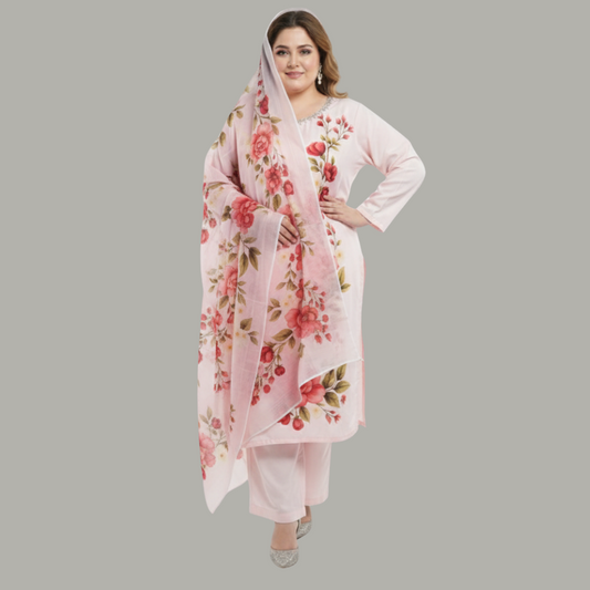 Blush Rose 3-Piece Cotton Silk Suit PSW-10089