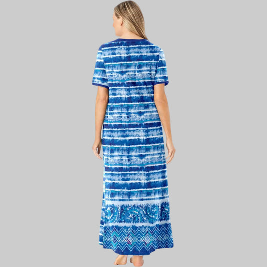 Bright Cobalt Tie Dye Stripe Long T-Shirt Lounger PSW-9502