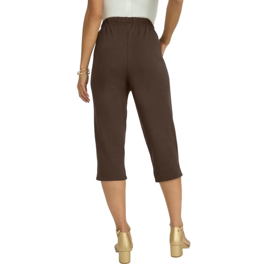 Chocolate Drawstring Soft Knit Capri Pant PSW-6816