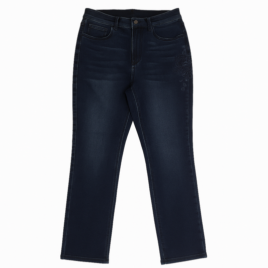 Dark Wash Plus Size Women Floral Embroidery Jeans PSW-4673