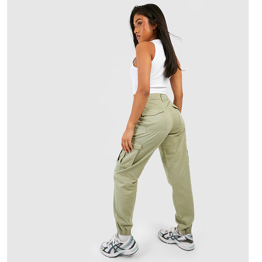 Khaki High Waisted Twill Cargo Joggers PSW-8451