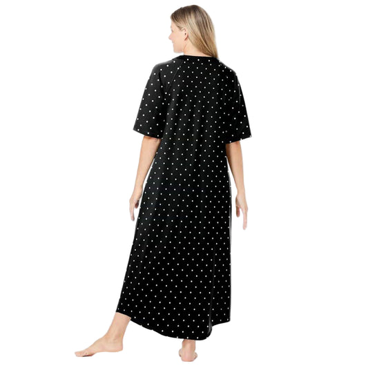 Black Dot Long French Terry Zip-Front Robe PSW-10047