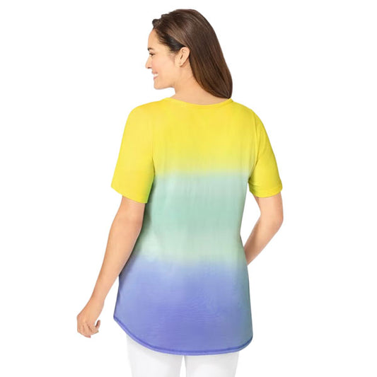Multi Dip Dye Short Sleeve V Neck Shirred Tee PSW-6918