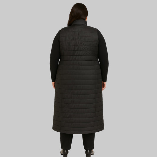 Black Sleeveless Long Puffer Jacket PSW-10402