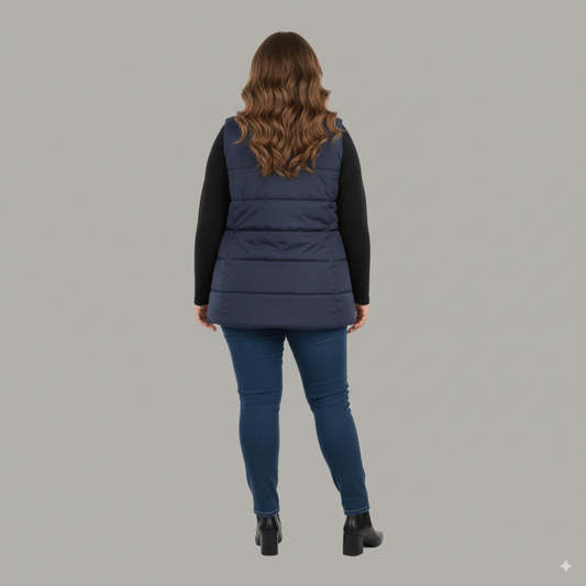 Navy Blue Sleeveless Plus Size Women’s Puffer Jacket PSW-10070
