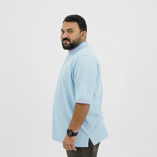 Plus Size Classic Comfort Light Blue Dotted Polo Shirt PSM-9207