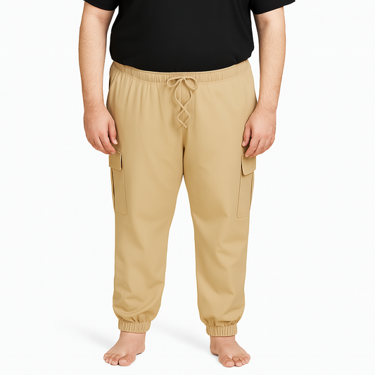 Khaki Twill Cotton Plus-Size Cargo Joggers PSM-9720