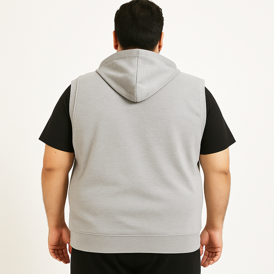 Steel Grey Plus Size Sleeveless Zip-Up Fleece Hoodie PSM-9844