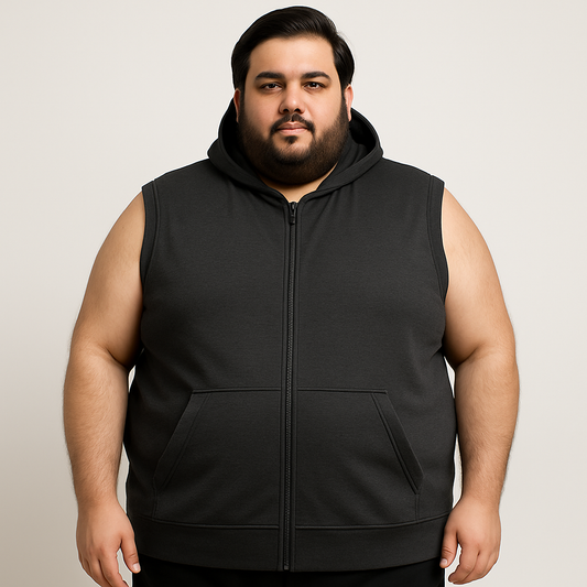 Charcoal Plus Size Sleeveless Zip-Up Fleece Hoodie PSM-9845