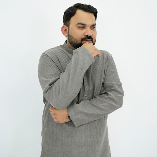 Charcoal Textured Cotton Plus Size Kurta Pajama PSM-9057