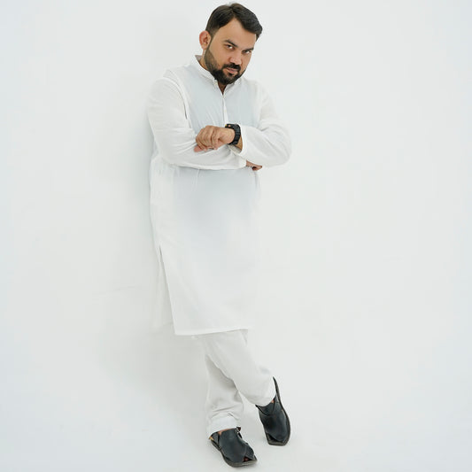 Classic White Cotton Kurta Pajama - Plus Size PSM-9061