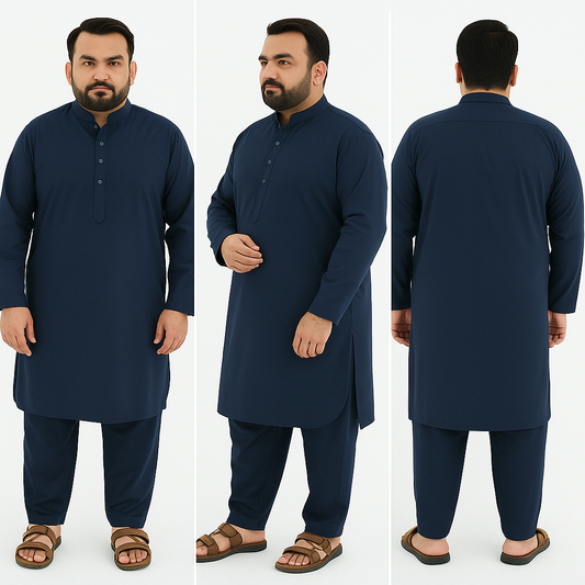 Dark Blue Premium Wash & Wear Plus Size Kurta Shalwar PSM-9513