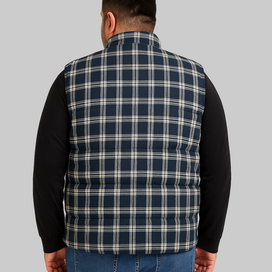 Navy Checkered Plus Size Sleeveless Puffer Vest PSM-9991