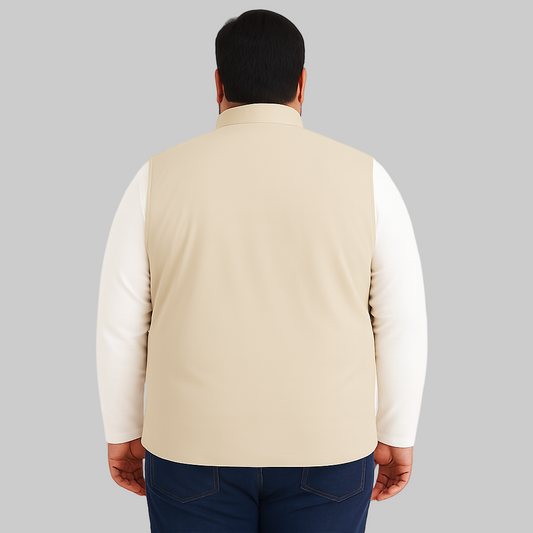 Beige Plus-Size Sleeveless Puffer Jacket PSM-9997