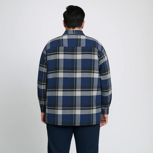 Navy Plaid Fleece-Lined Flannel Shirt Jacket PSM-6597