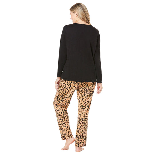 Black Plus Size Women French Terry Knit Pajama Set PSW-6300