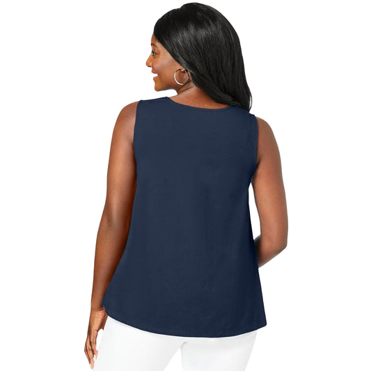 Navy Stretch Cotton V-Neck Trapeze Tank PSW-7956