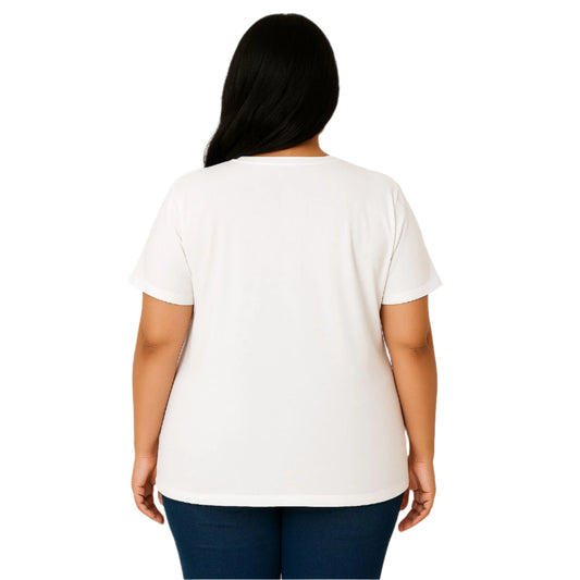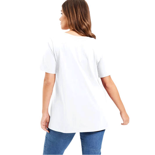 White Short-Sleeve V-Neck Plus Size Tunic PSW-9261