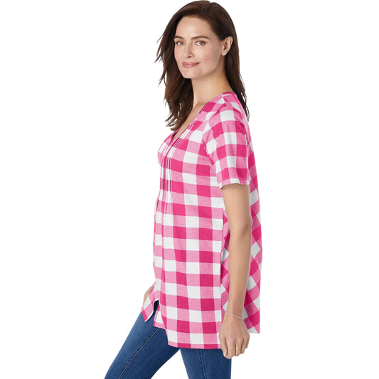 Raspberry Buffalo Plaid knit Pintucks Tunic PSW-4946