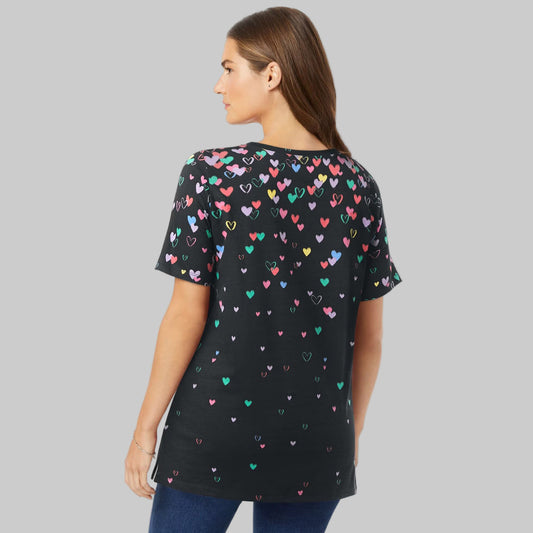 Black Multi Falling Hearts Graphic Tee PSW-10314