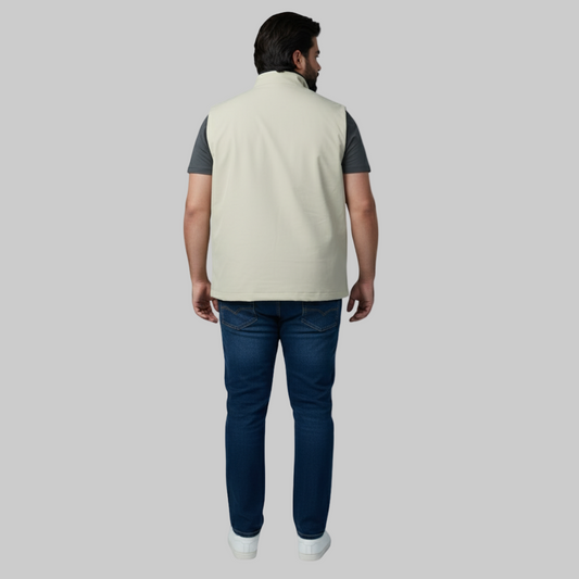 Beige Plus-Size Sleeveless Puffer Jacket PSM-9997