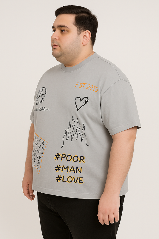 Grey Urban Graffiti Plus Size Oversized T-Shirt PSM-9526