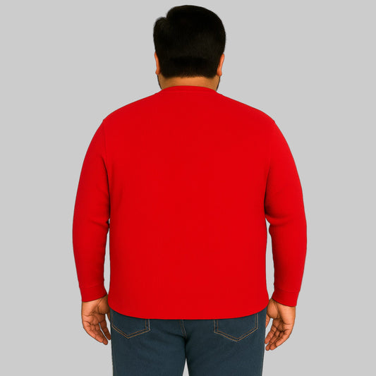 Red Plus Size Waffle-Knit Thermal Henley Tee PSM-10332