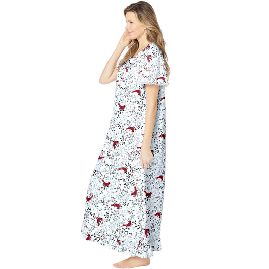 Red Cardinals Long Floral Print Cotton Gown PSW-5048