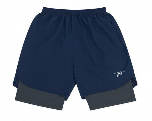 Navy Blue Hybrid Double-Layer Performance Shorts PSM-9843