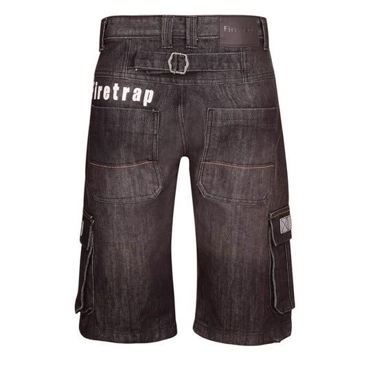 Black Wash Denim Knee Length Cargo Shorts PSM-8875